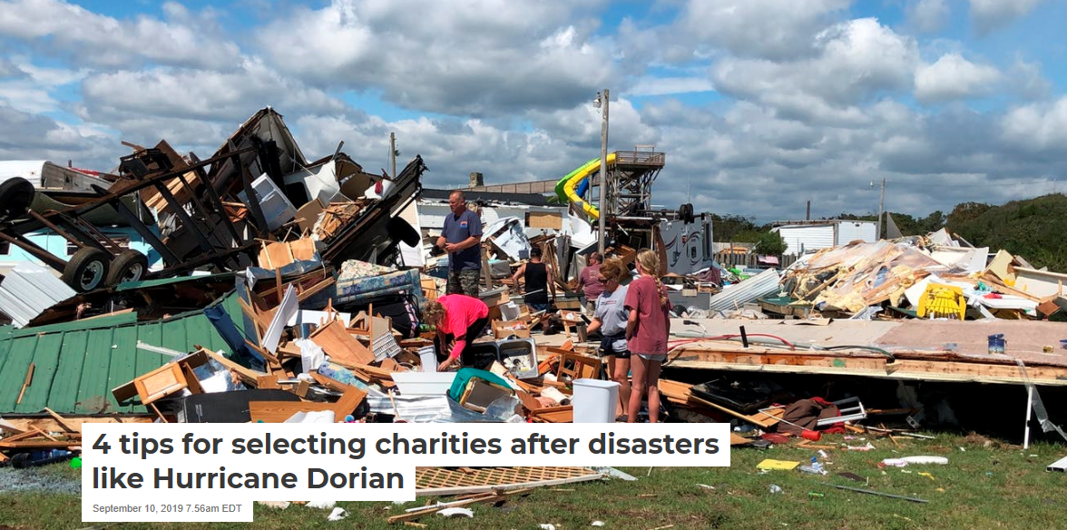 Hurricane Dorian’s destruction in the Bahamas, North Carolina and up the Atlantic coast provides a terrible reminder of how these storms can upend lives and destroy homes. As with previous disasters, millions of Americans are trying to figure out the best way to use their money to help people recover.