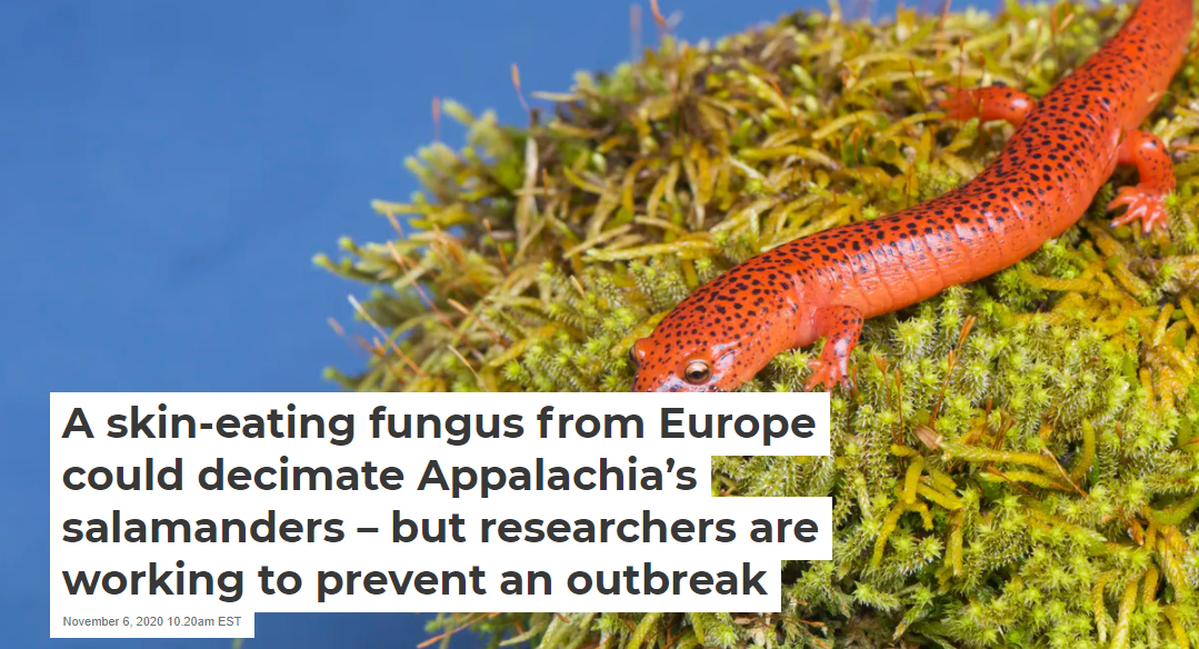 The discovery of a new chytrid fungus in Northern Europe was very alarming. It was discovered in 2010, and since then, salamander populations all over Europe have seen precipitous declines. There’s now research that indicates that it may have actually been introduced around Germany and spread out from there.