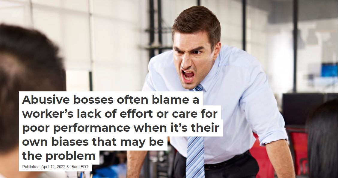 Suggesting abusive management behaviors are justified or that a worker may deserve the treatment is problematic because it puts the onus for correcting these harmful actions on the targets of abuse rather than the perpetrators. Our research suggests it may be perceptual errors on the part of managers that deserve more blame.