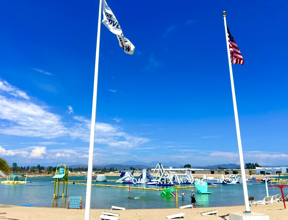 The entire park is set on a crystal-clear, freshwater lake maintained at a perfect 74–78°F year-round—inviting for cool splashes even on hot SoCal days. Impressively, the lagoon is cleansed constantly: a pump system circulates 30,000 gallons of purified water every hour, fully regenerating the lagoon roughly every 14 hours.