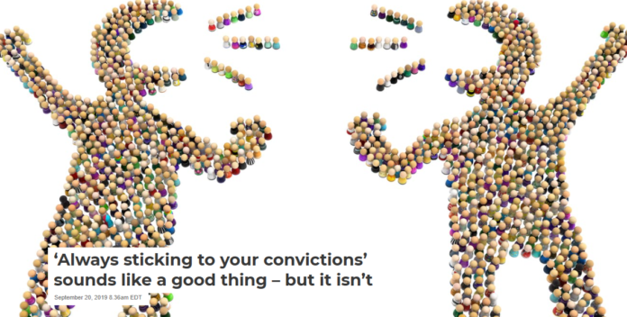 And because it is connected to a person’s identity, giving up a conviction – even admitting it might need some improvement – feels like an act of self-betrayal and a betrayal of their tribe.