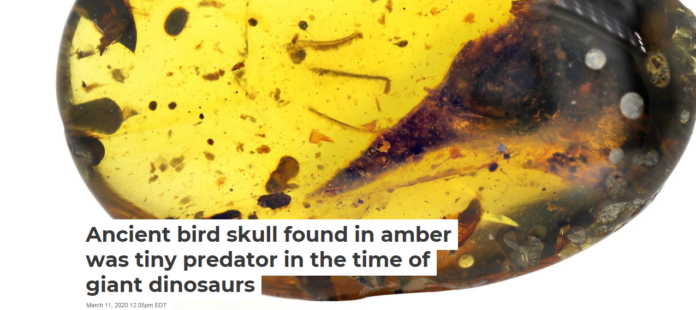 In 2016, our colleague Xing Lida held up a small piece of polished, deeply yellow amber. As sunlight shone through the ancient resin, Lida saw the outline of a pristinely preserved, amazingly small skull. There was a prominent eye socket, a dome-shaped crown of the head, a long, tapering snout and even small teeth. It was bird-like, but in a strange and ancient way.