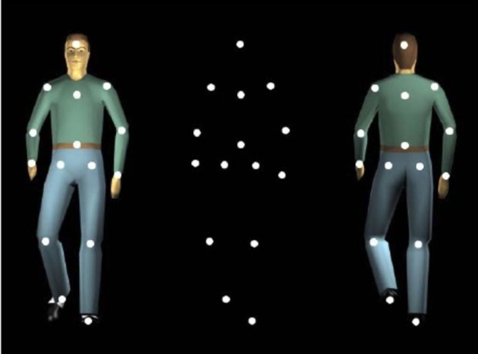 We have a remarkable ability to detect the motion of other living things. If someone in our periphery moves, for example, our brains have evolved to detect that movement quickly and efficiently. This biological motion perception is so well developed that when we look at a series of dots used to represent the human figure placed at different parts of the body – called a point-light walker – we can tell many different things about that figure, such as their gender, mood, and even how stressed they are.