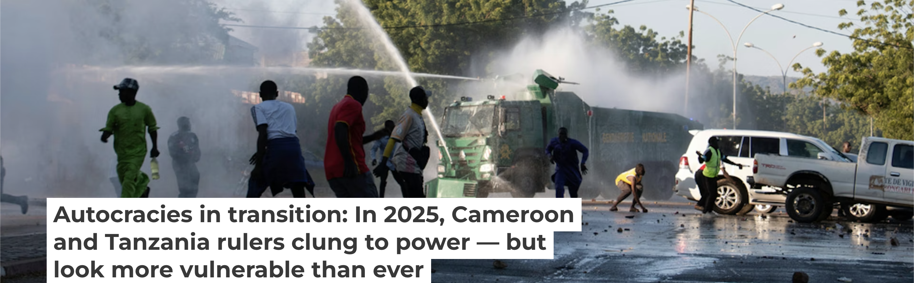 In October, Tanzanian President Samia Suluhu Hassan won a highly dubious 98% of the presidential vote, perpetuating the ruling party’s grip on power to 60 years. During the same month, Cameroonian President Paul Biya, who has ruled the country since 1982, secured an unprecedented eighth term in office. It will allow him to serve until he turns 99.