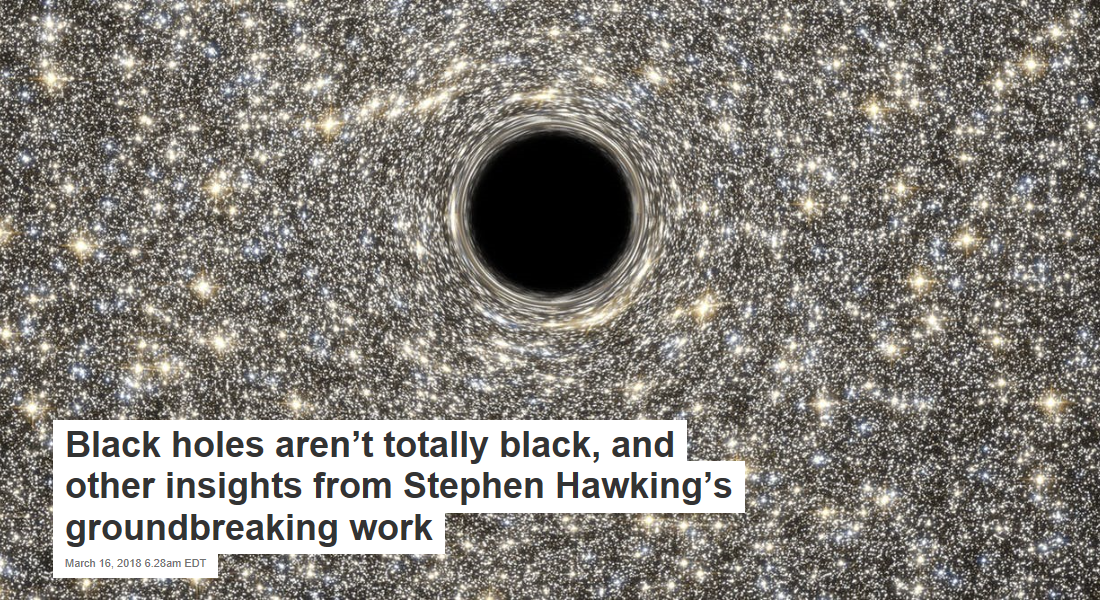 In a cosmic accident, Hawking died on Einstein’s birthday, whose theory of light – it just so happens – saves Hawking’s theory of black holes.