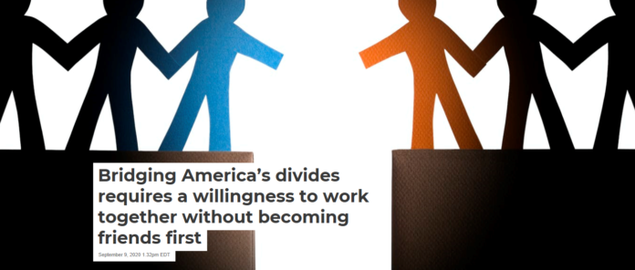 But after studying how Americans cooperate, both in moments of political upheaval and in ordinary times, I am convinced that tackling America’s political divide demands more than intimacy – and less than it.