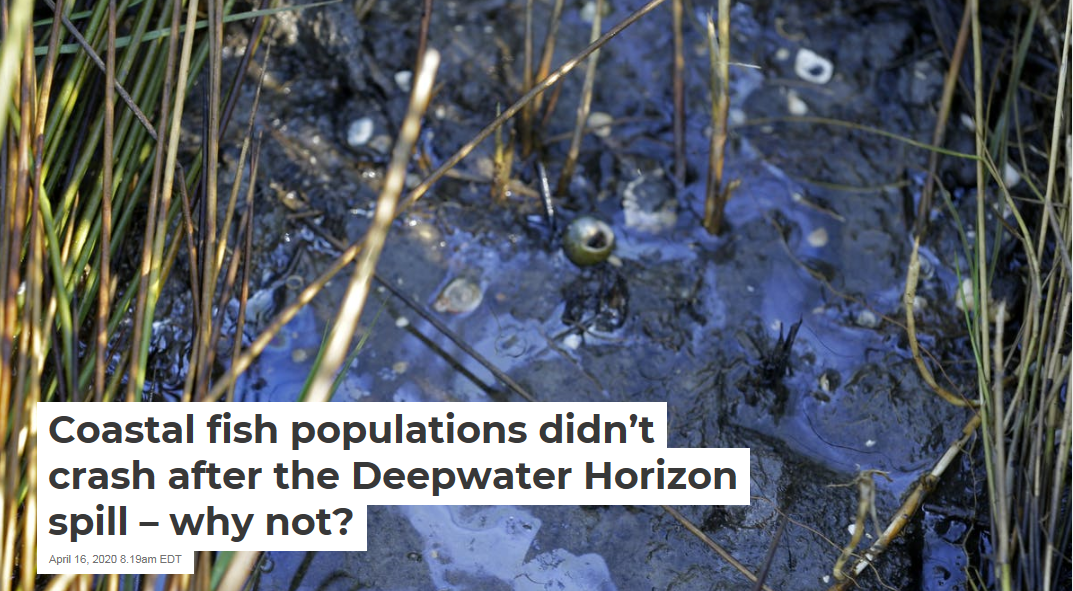 It’s a remarkable outcome, and a sharp contrast to the spill’s effects farther from shore, where it killed thousands of marine mammals and sea turtles and severely harmed life on the seafloor. Why did coastal fisheries fare better? The answers are complex, and likely due to multiple mechanisms that we don’t fully understand.