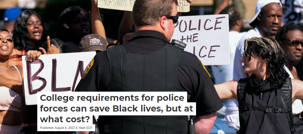 Police forces requiring at least a two-year college degree for employment are less likely to employ officers who engage in actions that cause the deaths of Black and unarmed citizens, according to our new peer-reviewed study of data on 235 U.S. city police departments from 2000 to 2016.