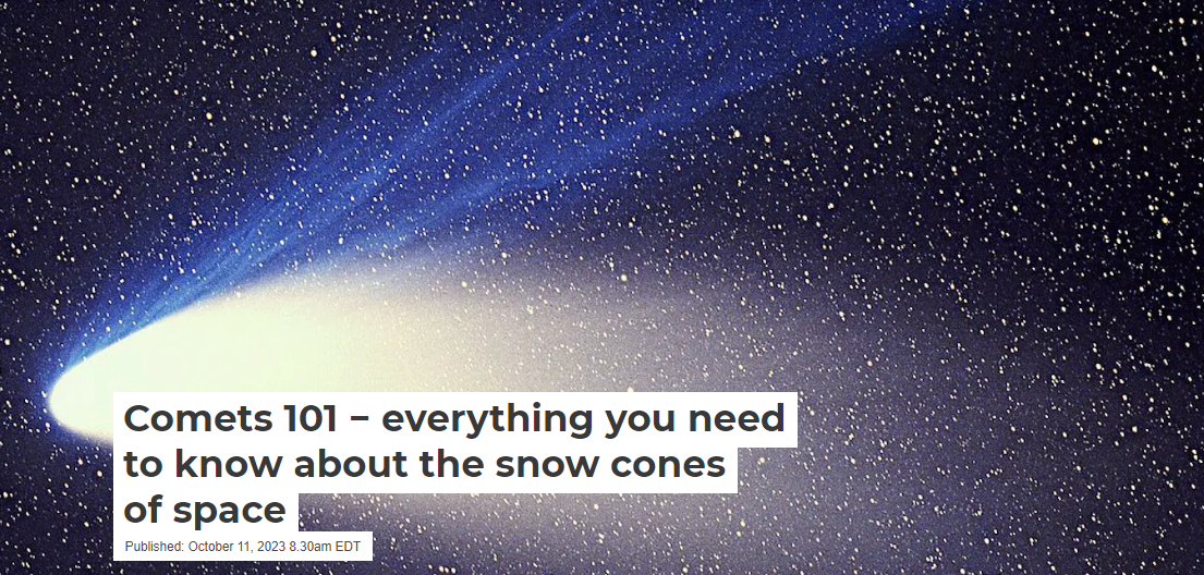 When you hear the word comet, you might imagine a bright streak moving across the sky. You may have a family member who saw a comet before you were born, or you may have seen one yourself when comet Nishimura passed by Earth in September 2023. But what are these special celestial objects made of? Where do they come from, and why do they have such long tails?