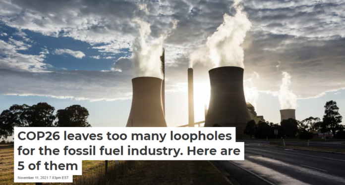 The summit, COP26, has not lived up to that ambition because there are too many loopholes for the fossil fuel industry to exploit.