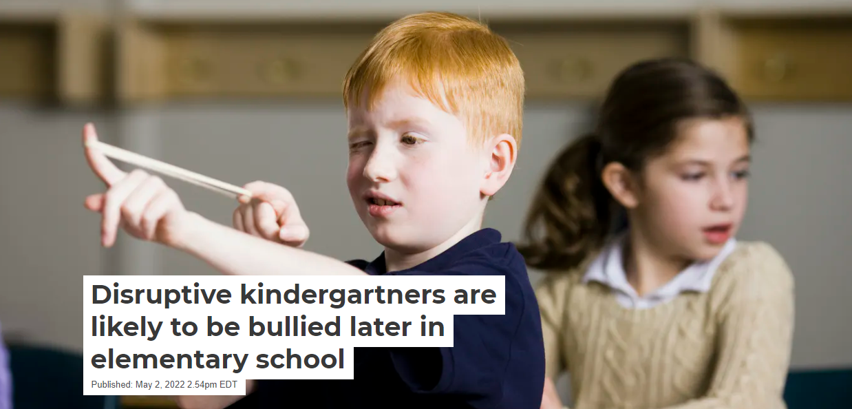 Kindergartners who act out, disrupt classrooms, get angry and argue with their teachers are especially likely to be bullied once they reach third, fourth and fifth grade, our research group has found.