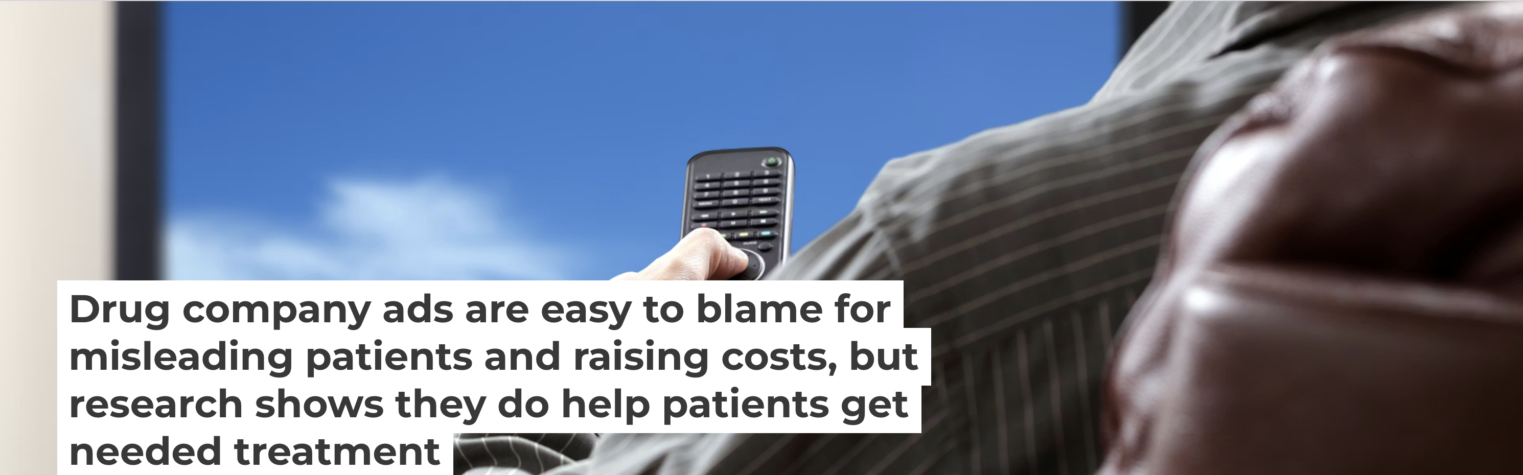 Research finds that ads bring patients into care, while leaving prescribing decisions largely in physicians’ hands, resulting in more patients being diagnosed and treated. For example, according to a 2022 study on antidepressants, advertising encouraged more people to start treatment and expanded overall use, especially for underdiagnosed conditions.