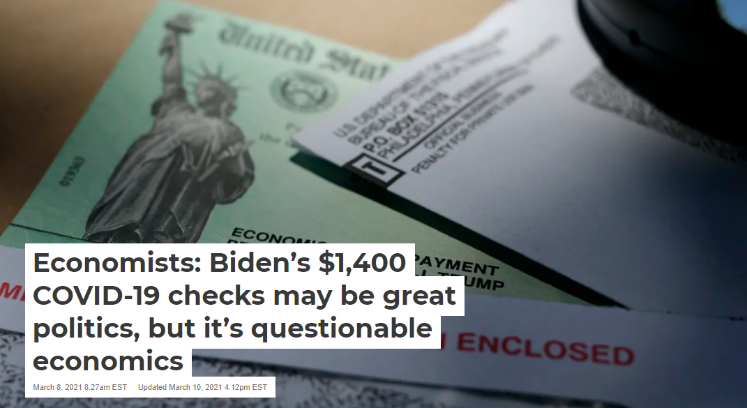 The US$1,400 direct checks to people are the most expensive and perhaps most popular part of the $1.9 trillion coronavirus relief package racing its way through Congress right now.