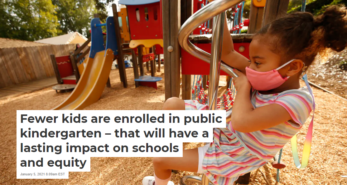 Given the pressures on families, combined with hopeful news about vaccines, it’s not surprising that parents are choosing to wait until next year to send their children to school. While we won’t know the full impact on children’s learning or school budgets for years, fewer children in kindergarten now is likely to have long-term, cascading consequences for everyone.