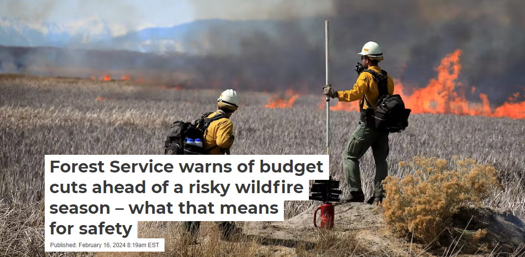 These are some of the reasons why an announcement from U.S. Forest Service Chief Randy Moore on Feb. 8, 2024, is raising concerns. Moore told agency employees to expect budget cuts from Congress in 2024. His letter was thin on details. However, taken at face value, budget cuts could be interpreted as a reduction in the firefighting workforce, compounding recruitment and retention challenges that the Forest Service is already facing.