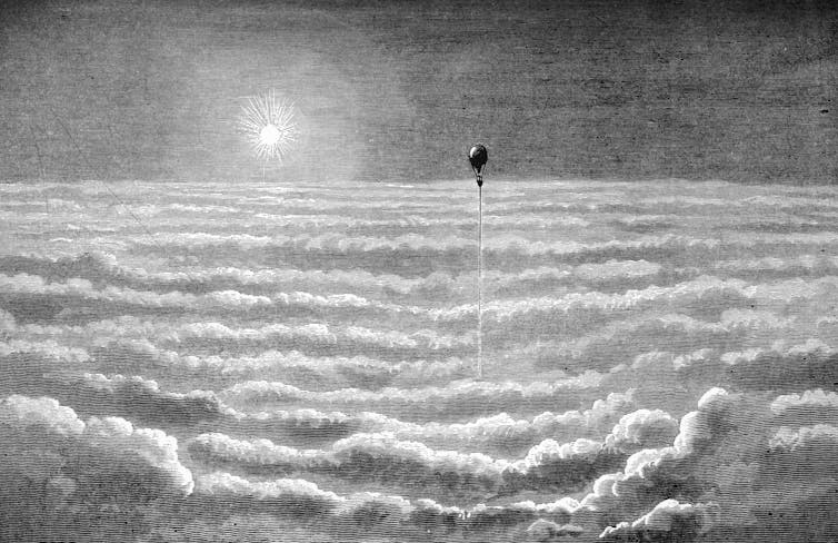 Over time, aeronauts became more skilled, the technology improved and trips became safe enough to bring along passengers – provided they could afford the trip. At the time of Glaisher’s ascents, it cost about 600 pounds – roughly US$90,000 today – to construct a balloon. Scientists who wanted to make a solo ascent needed to shell out about 50 pounds to hire an aeronaut, balloon and enough gas for a single trip.