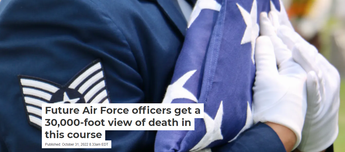 For example, the cadets noticed that because of the stigma often attached to suicide, cadet deaths by suicide were treated as cautionary lessons. On the other hand, a cadet who was killed in a flying accident was labeled a hero. With our help, the cadets drafted a letter to the dean, who then attended the final lesson to listen to them. The cadets expressed the need to remember fellow members of the Cadet Wing and grieve with one another regardless of how a cadet died.