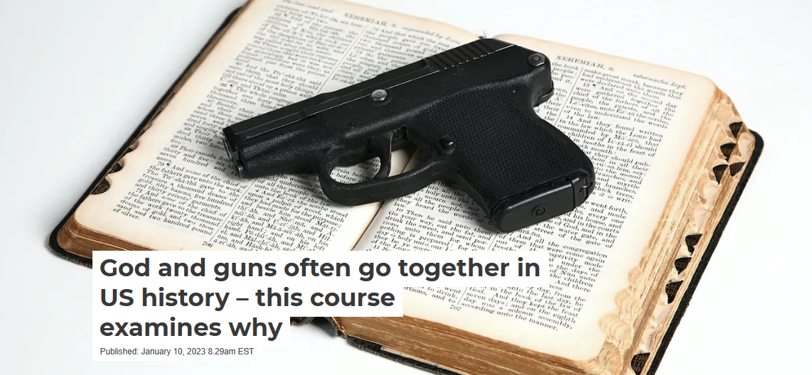 Hopefully this course will equip students to coherently answer the question of why American religious culture is so intertwined with gun culture – especially if the subject comes up at Thanksgiving dinner.