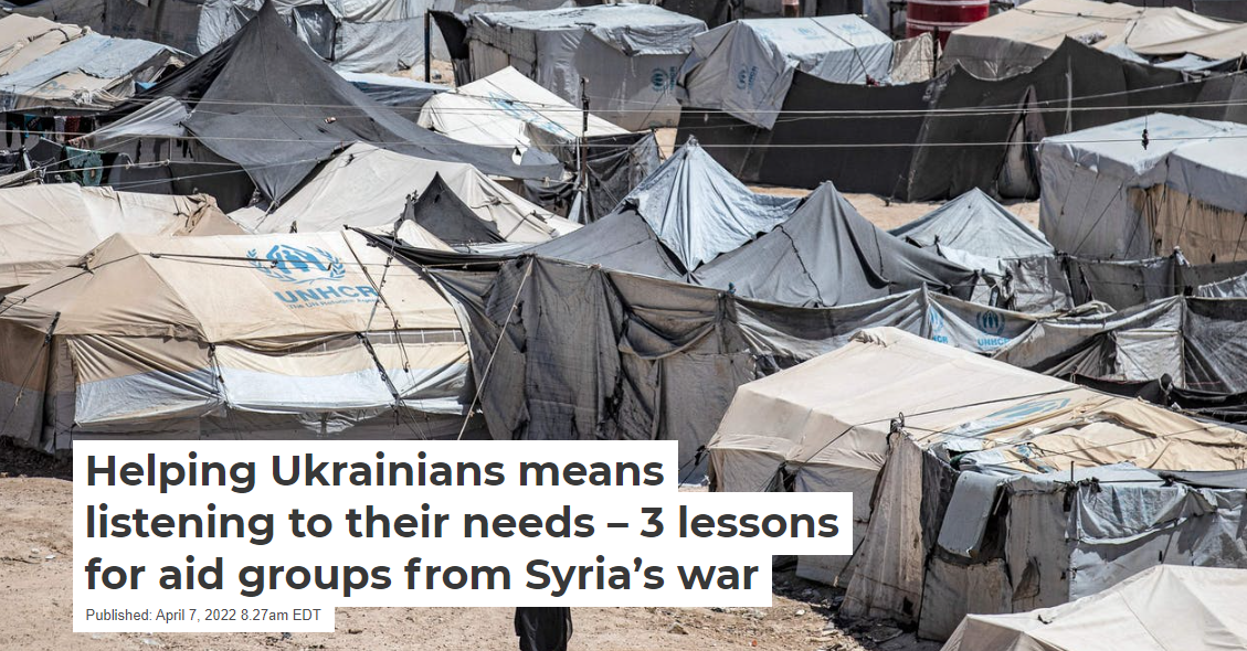 Another parallel is the involvement of many United Nations agencies and nongovernmental organizations, such as Doctors Without Borders, the International Committee for the Red Cross and Save the Children. We have identified three lessons from Syria these humanitarian institutions should consider applying in Ukraine, based on what we’ve learned from our research on humanitarian assistance there.