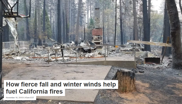 And so, we residents of the state find ourselves again facing late fall wildfires that have scorched drought-parched vegetation while the rainy season evades its highly anticipated start. As the death toll and structure loss from fires burning in the northern and southern parts of the state continue to surpass records set not even a year ago, it is crucial to understand the role winds play in California fires.