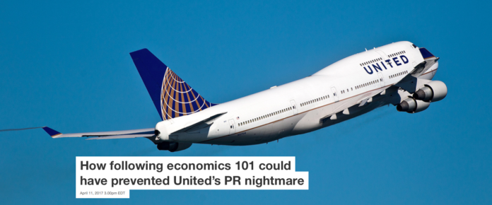 From the point of view of economics, the airline’s inability to find volunteers means that the compensation offered was too low. Some accounts of the incident suggest that the airline offered $400 for the passengers to volunteer to take a flight on the next day, and the offer was later raised to $800.