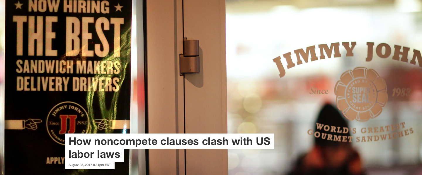 Critics have pointed out the disadvantages of noncompete clauses to unskilled labor. “By locking low-wage workers into their jobs and prohibiting them from seeking better-paying jobs elsewhere (companies) have no reason to increase their wages or benefits,” Illinois Attorney General Lisa Madigan said when she sued the Jimmy John’s fast-food franchise last year for making its employees sign noncompete clauses.