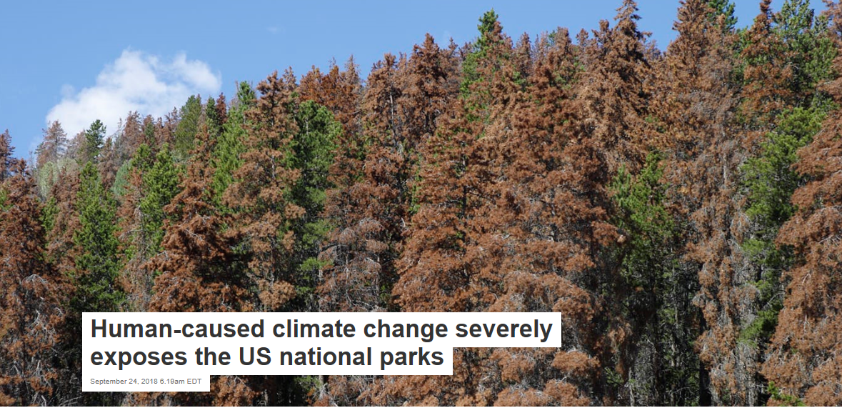 Human-caused climate change has caused historical impacts in places where we found significant past temperature increases. These impacts include melting of glaciers in Glacier Bay National Park, Alaska, tree death from bark beetles in Yellowstone National Park, upslope vegetation shifts in Yosemite National Park, California, and northward vegetation shifts in Noatak National Preserve, Alaska.