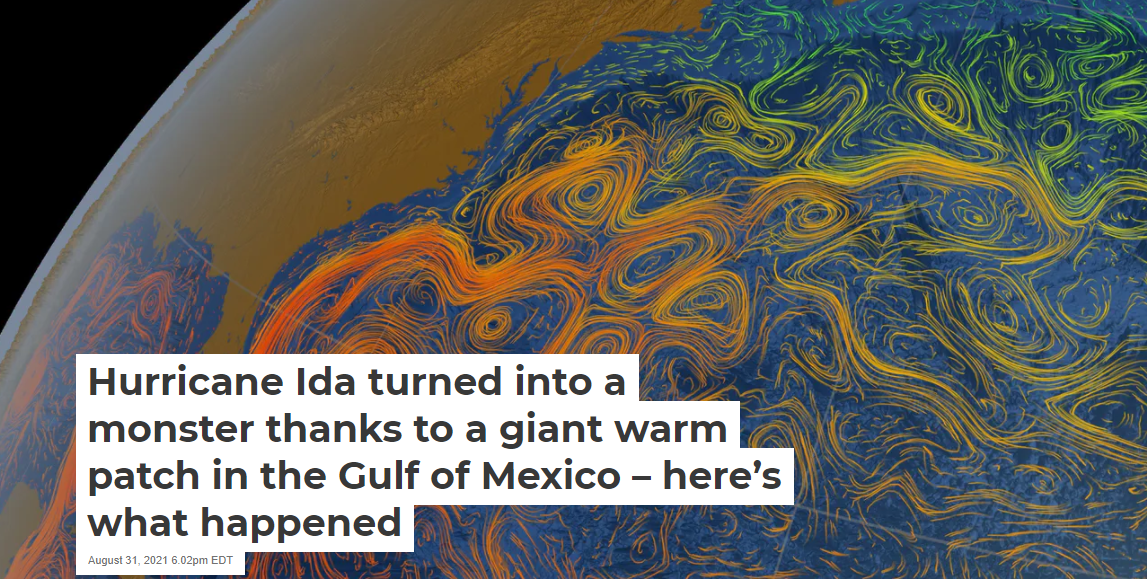 Hurricanes Katrina and Rita, both in 2005, had pretty much the same signature as Ida. They went over a warm eddy that was just getting ready to be shed form the Loop Current.