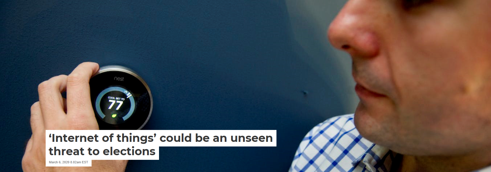 The threats to the 2020 election may be even more insidious. As I explain in my new book, “The Internet in Everything: Freedom and Security in a World with No Off Switch,” election interference may well come through the vast constellation of always-on, always-connected cameras, thermostats, alarm systems and other physical objects collectively known as the “internet of things.”