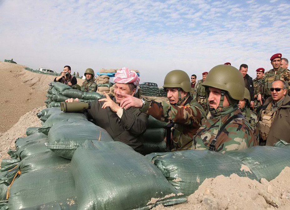 Masoud Barzani, president of the Iraqi Kurdistan Region, and Peshmerga on the border. Rudaw News Agency, Author provided