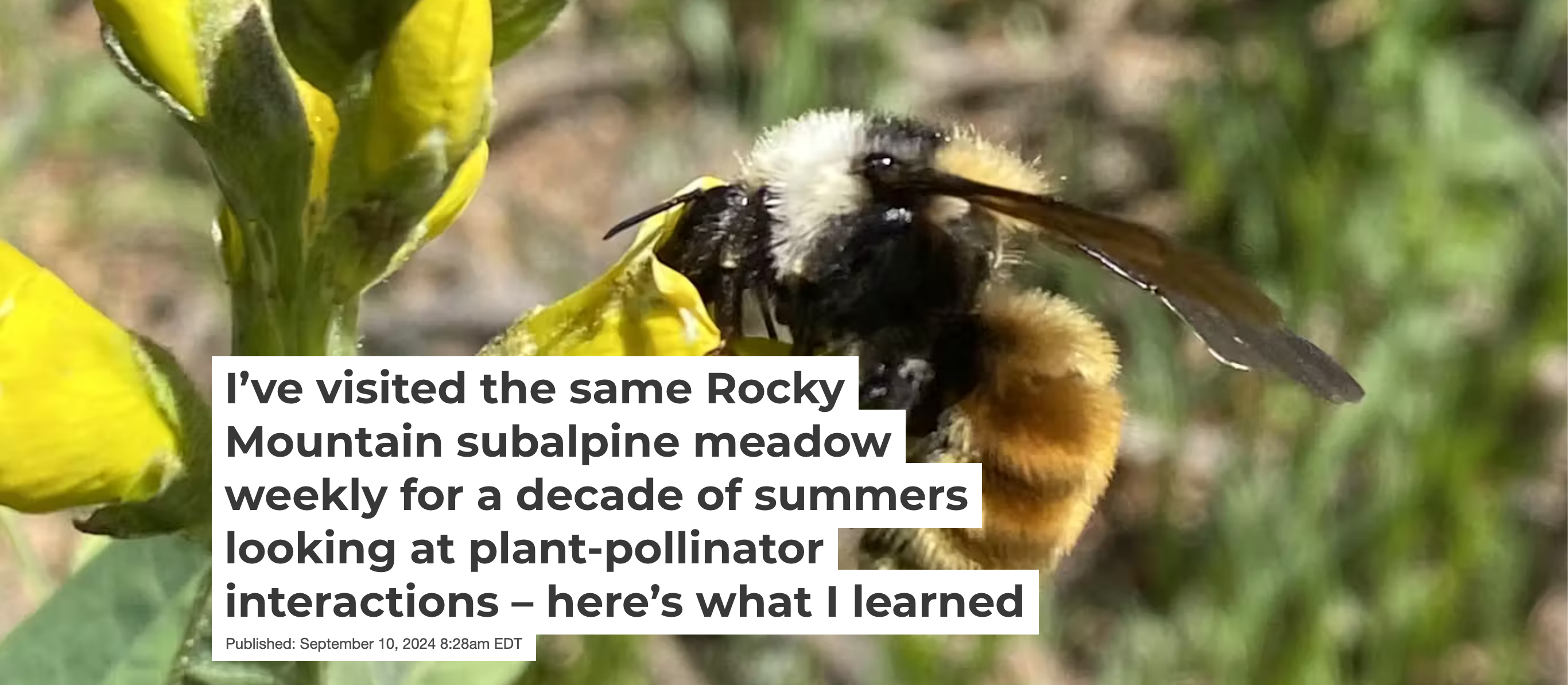 I wanted a local field site that allowed for frequent observations to study the dynamics of plant-pollinator networks. This beautiful subalpine meadow, bursting with wildflowers and just 40 minutes from campus, fit the bill perfectly.