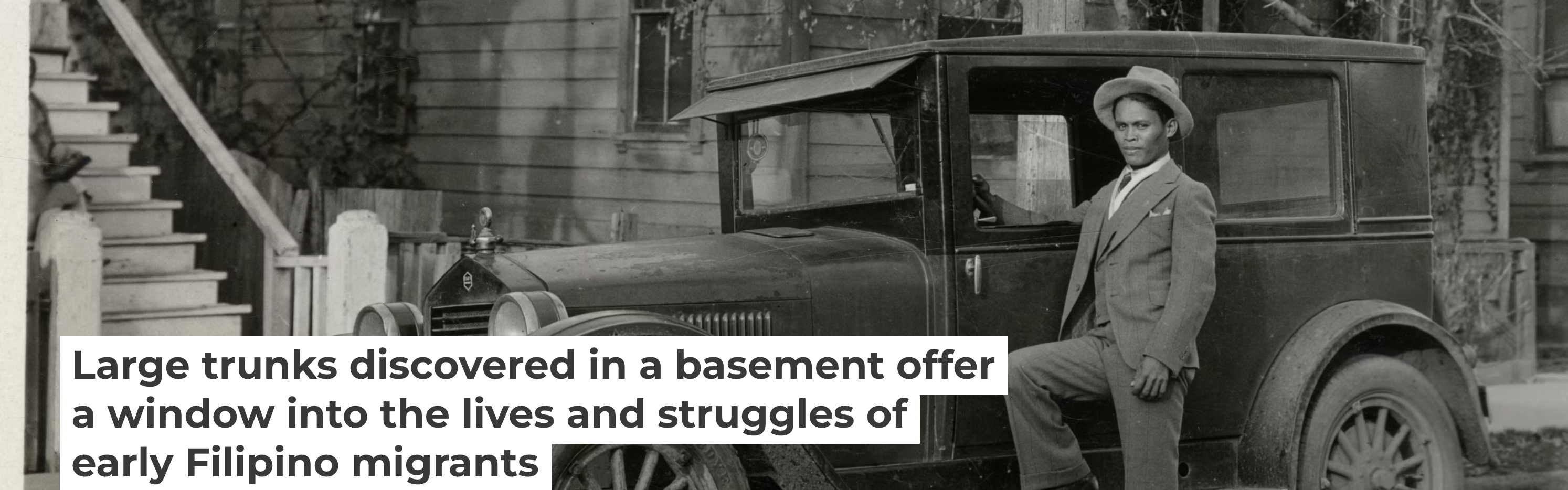 Omandam’s steamer trunk is emblematic of the trunks discovered by Somera in 2005. Omandam likely bought the trunk secondhand in the Philippines or Hawaii. While the origins of the trunk remain a mystery, it traveled with Omandam from job to job, reflecting the life of a migrant worker continually on the move. Many of these trunks – Omandam’s included – contained handwritten correspondence written in beautiful cursive, photographs, postcards, work tools, garments and pay stubs.