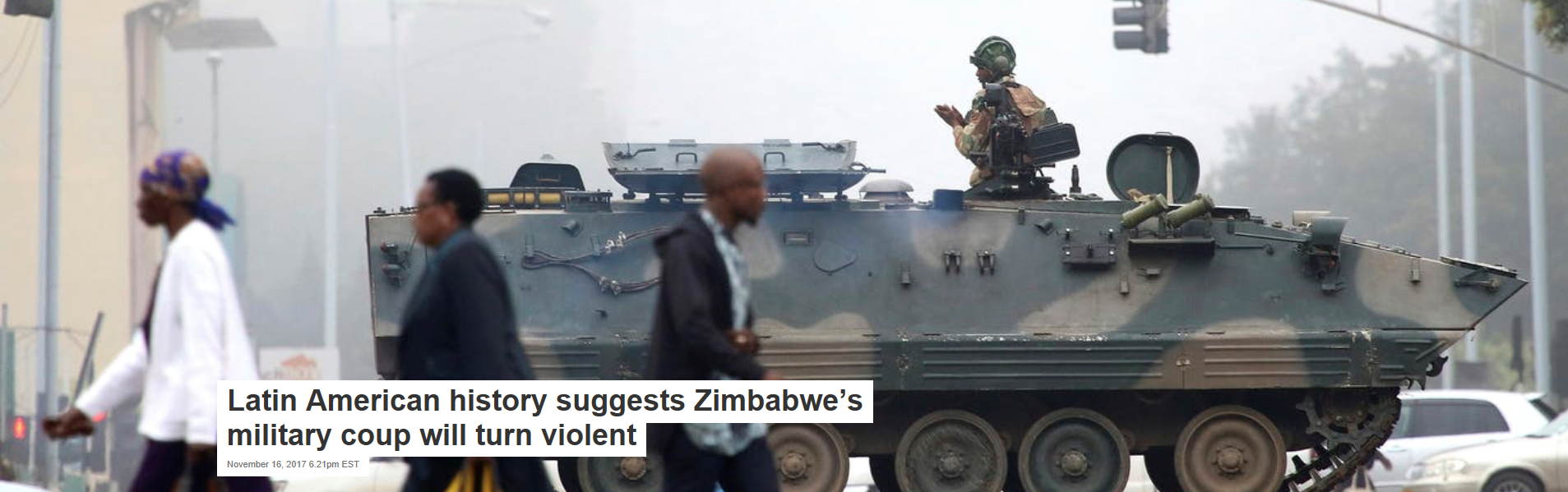 I would dispute that Zimbabwe’s political rupture will usher in an era of order and progress. And I think many Latin Americans would agree with me. I wish Zimbabweans luck, but based on my country’s past, I fear for their future.