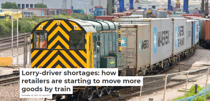 Lorry-driver shortages: how retailers are starting to move more goods by train