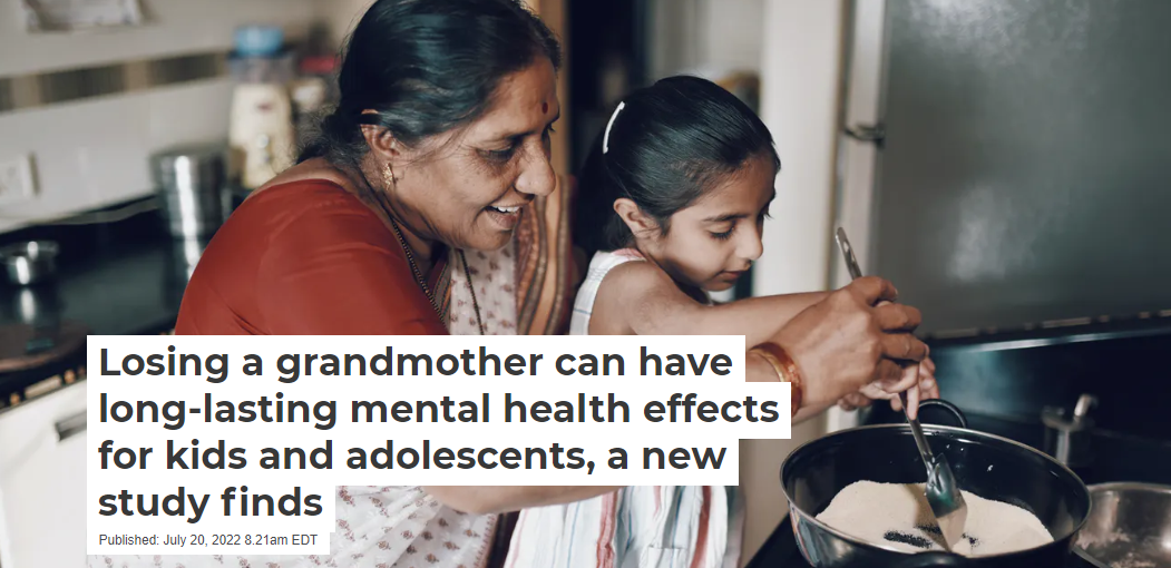 Losing a grandmother can have long-lasting mental health effects for kids and adolescents, a new study finds