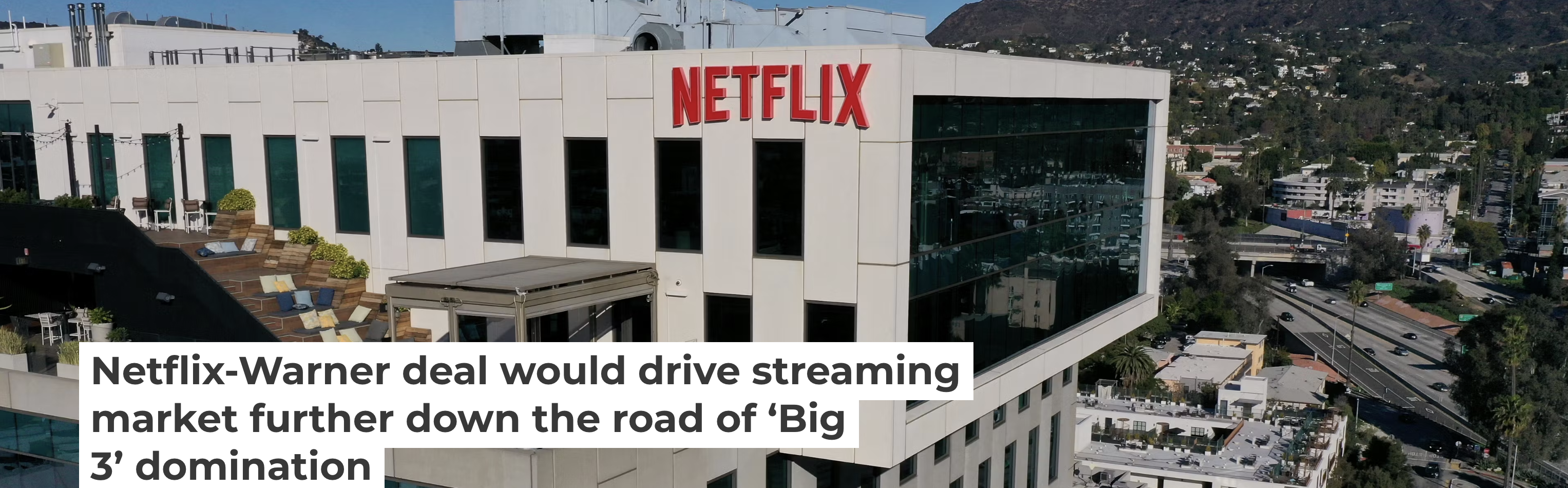 Still, if the Netflix-Warner Bros. deal completes, it will likely increase the valuation of other lagging streaming services due to increased scarcity of valuable content and subscribers. This is due to competitive limits that restrict the Big Three from getting bigger, making the combination of smaller streaming services more valuable.