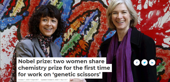 Nobel prize: two women share chemistry prize for the first time for work on ‘genetic scissors’