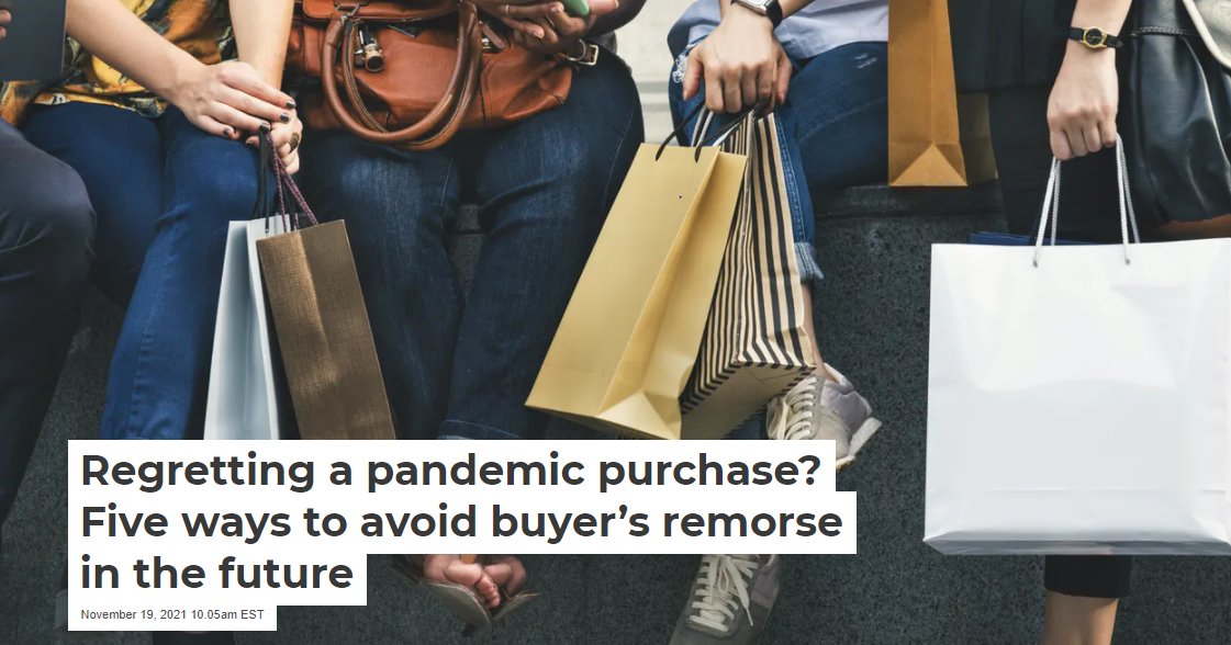 During the pandemic, many also turned to online shopping, by choice or necessity. This can also lead to higher levels of regret as consumers are not able to physically interact with the items they buy. When the package arrives on the doorstep, it may not be exactly what they wanted or expected, leaving people feeling let down.