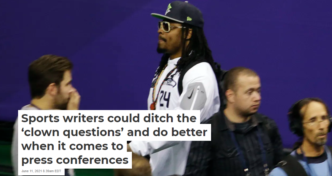 In truth, athletes no longer need the press to communicate with their fans. They can do that directly through social media channels. https://www.youtube.com/embed/CU1BuC1672U?wmode=transparent&start=0 Seattle Seahawks’ Marshawn Lynch tells a reporter during Super Bowl Media Day 2015: ‘I’m just here so I won’t get fined.’