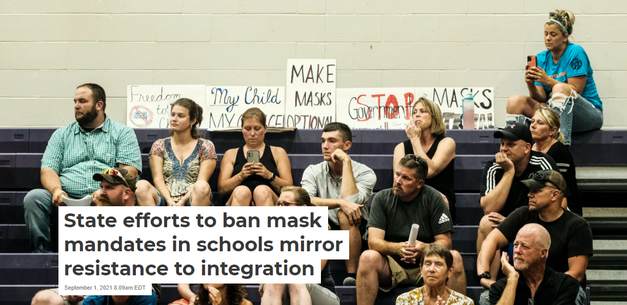 I don’t bring up this Southern resistance to federal mandates that affect U.S. schools merely to recount history. As a researcher who focuses on the role of federalism in U.S. education, I believe this resistance helps shine light on why several Southern states today are pushing back against federal guidance for teachers and students to wear masks in schools to lessen the risks of contracting the more dangerous delta variant of COVID-19.