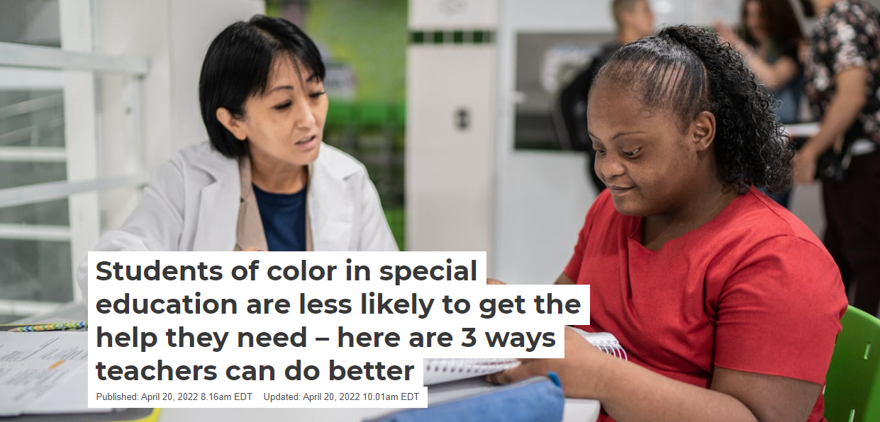 As a Black feminist researcher who focuses on the intersection of race and disability, here are three recommendations I believe can help teachers to better support students of color with disabilities.