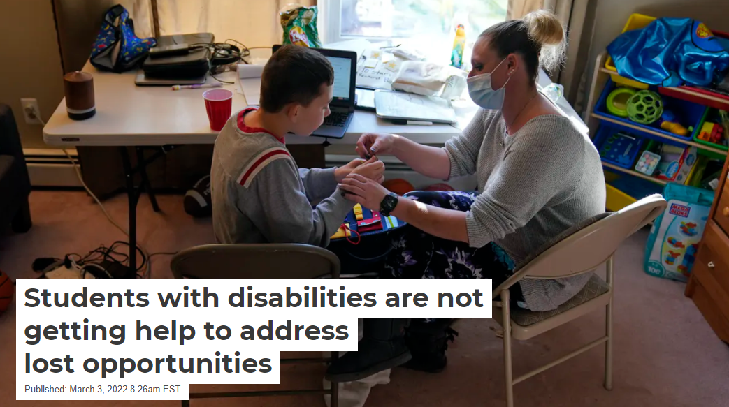 But there are problems with that additional help as well, as schools continue to do their best with the resources that are available to them. A November 2021 survey by the Council of Parent Attorneys and Advocates – an advocacy group for students in special education and their families – found that 86% of parents reported that their child experienced learning loss, skill regression or slower-than-expected progress in school.