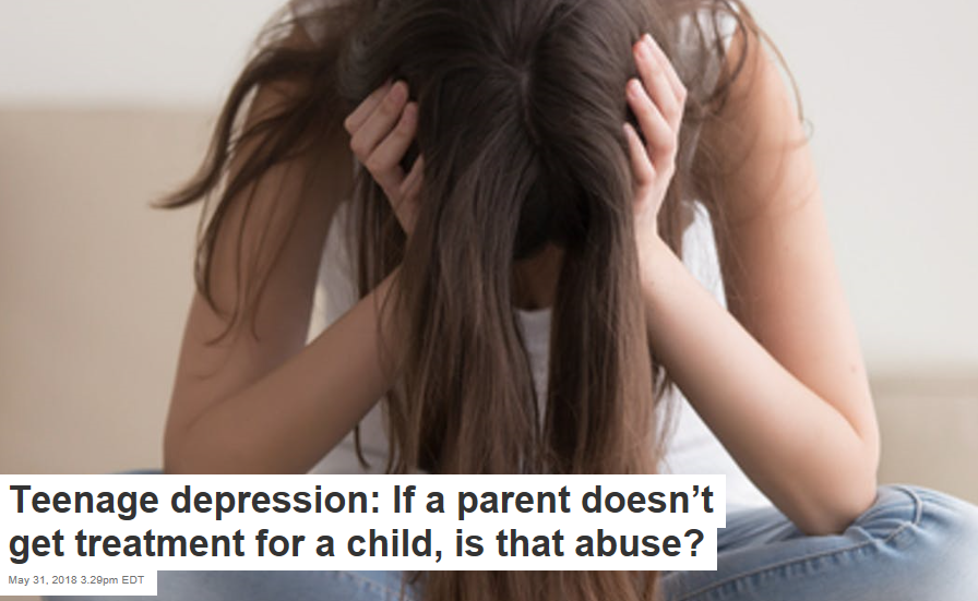 I authored a paper, published May 31, in which I ask: Would it be considered child abuse for a parent to not get medical help for their depressed teen?