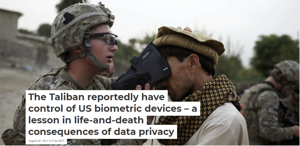 The data privacy and cybersecurity concerns surrounding Taliban access to U.S. and former Afghan government databases are a warning for the future. In building biometric-driven warfare technologies and protocols, it appears that the U.S. Department of Defense assumed the Afghan government would have the minimum level of stability needed to protect the data.