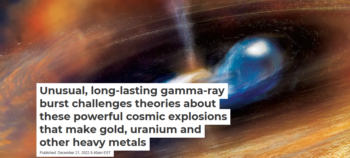 Unusual, long-lasting gamma-ray burst challenges theories about these powerful cosmic explosions that make gold, uranium and other heavy metals
