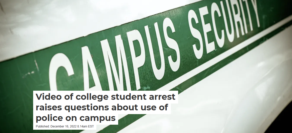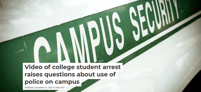 To me, this incident is also an example of how colleges and universities weaponize police against students. In this case, a university staff member – who was not involved in the dispute – decided to call campus law enforcement on this Black student. Other students in the video can be heard saying that the student did not start the argument.