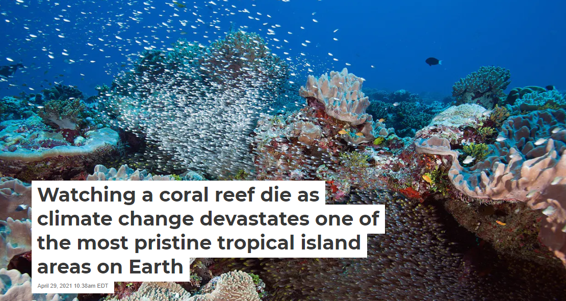 Coral reefs are the canary in the coal mine. Humans have collapsed other ecosystems before through overfishing, overhunting and development, but this is the first unequivocally tied to climate change. It’s a harbinger of what can happen to other ecosystems as they reach their survival thresholds.