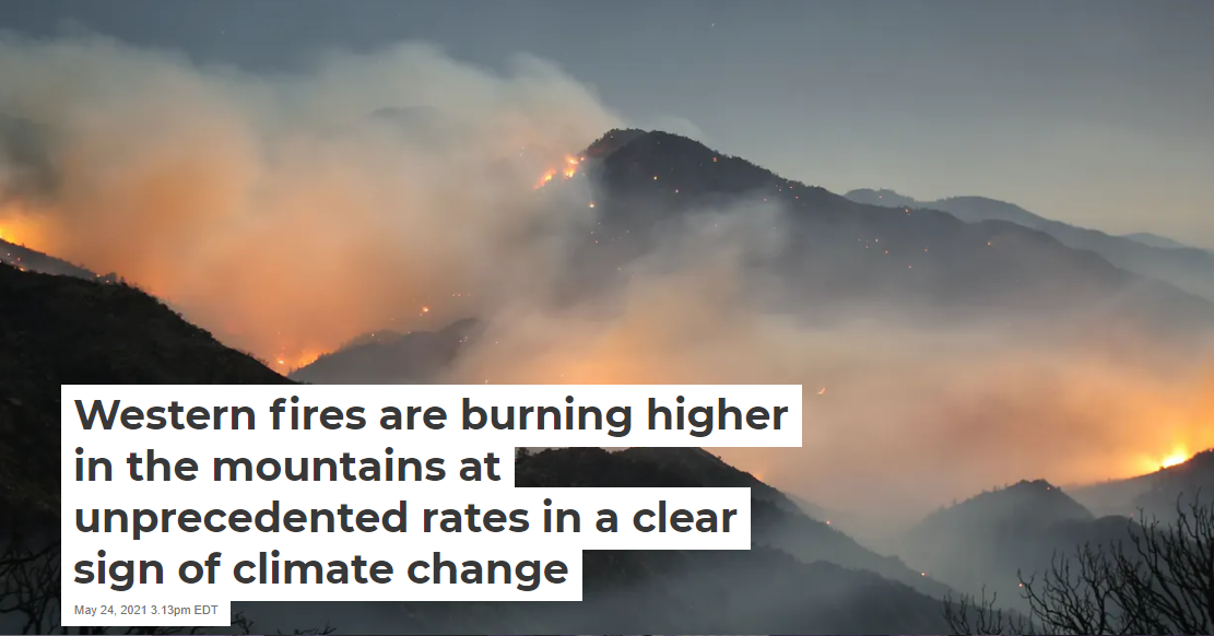 Climate change is increasing fire risk in many regions across the globe, and studies show that this trend will continue as the planet warms. The increase in fires in the high mountains is another warning to the U.S. West and elsewhere of the risks ahead as the climate changes.