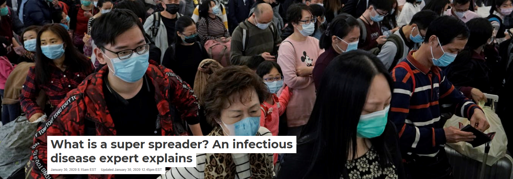 Recent reports out of Wuhan also cite a case of a single patient who infected 14 health care workers. That qualifies him as a super spreader: someone who is responsible for infecting an especially large number of other people.
