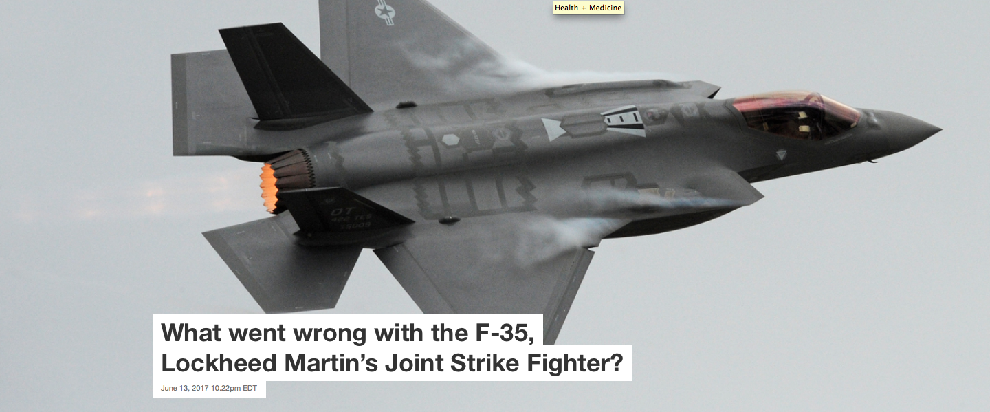 And yet, the U.S. is still throwing huge sums of money at the project. Essentially, the Pentagon has declared the F-35 “too big to fail.” As a retired member of the U.S. Air Force and current university professor of finance who has been involved in and studied military aviation and acquisitions, I find the F-35 to be one of the greatest boondoggles in recent military purchasing history.
